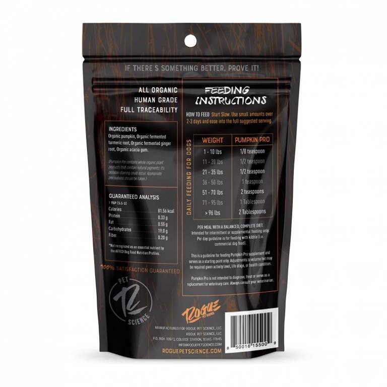 In typical Rogue Pet Science fashion, a no-nonsense approach to addressing the root of the problem was used to develop Pumpkin Pro. The combination of animal health expertise, first hand experience, and work with clinical health experts in the field…a solution was engineered…and Pumpkin Pro came into existence!