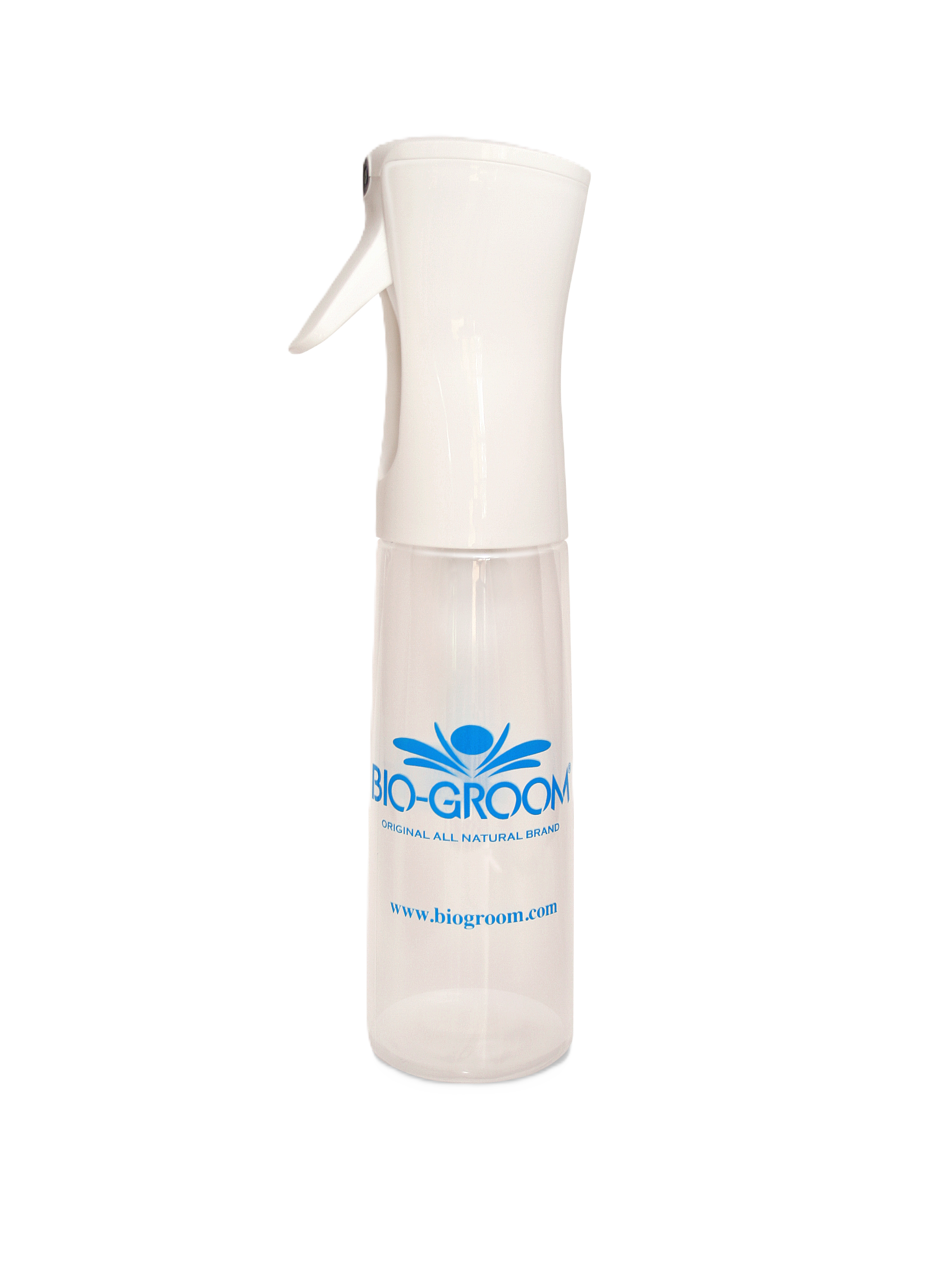 Bio-Groom’s Ultra-Fine Mist Spray Bottle holds 25 ounces of your favorite Bio-Groom Cologne or other Bio-Groom finishing product. Our new Ergonomic Design means less hand fatigue when you are grooming all day and our continuous ultra-fine mist allows you to cover large areas more evenly resulting in a better groom. Bio-Groom’s Ultra-Fine Mist bottle is BPA-free, Leak Proof, Airless, and can spray in all directions!